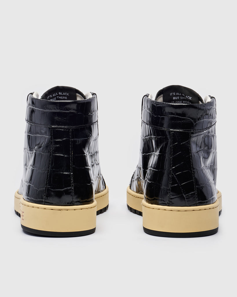 Realizzata in nappa nera super soft con un'elegante stampa coccodrillo, questa sneaker da uomo si adatta ai movimenti con disinvoltura, donando un'autenticità che si abbina a qualsiasi outfit. La suola super vintage in collaborazione con Vitale Bramani aggiunge un elemento distintivo e unico.
